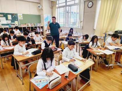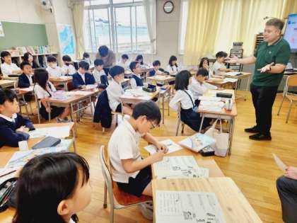 今日はC-NETの先生が来られ、3年生以上のクラスで、外国語、外国語活動の授業が行われました。