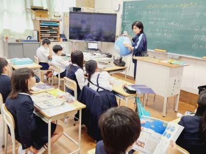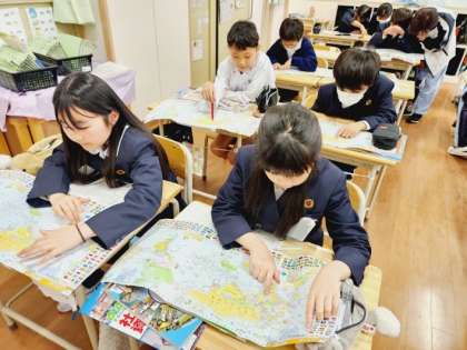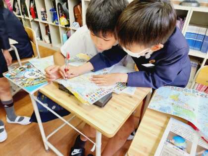 今日は「北緯〇度、東経□度にある国は?」といった活動も取り入れられ、子どもたちはとても意欲的に学習に取り組むことができていました!