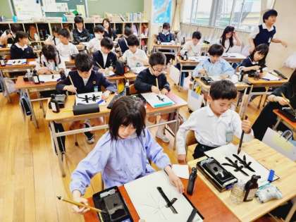 4年生は新学年初めてとなる「習字」の学習を行いました。