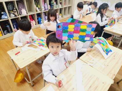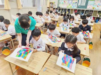 「こどもの日」に合わせて、図画工作の時間に「こいのぼり」にパスで着色する学習をしてきた1年生。