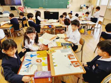 2年生が1年生を連れて校内を案内する「がっこうたんけん」。