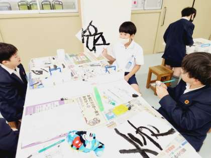 6年生は図画工作の時間に、自分の名前を様々な形にデザインした「名前アート」の制作に取り組んでいます。