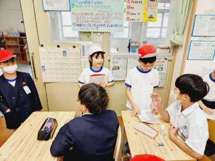 今日は5年生が6年生の教室を訪問し、「林間学習」のことについてインタビューをしました。
