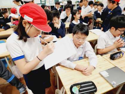 事前に聞きたいことをまとめたメモをもとに、6年生から林間学習についていろいろなことを聞き出し、その内容についてさらに質問をすることもできました。