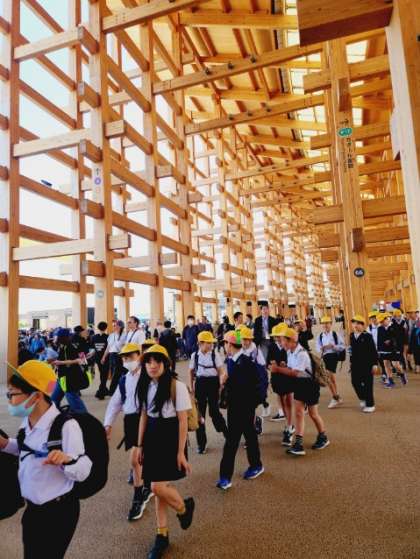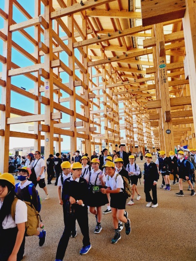 5年生・6年生、大屋根リングを後に、万博での遠足を終えました!