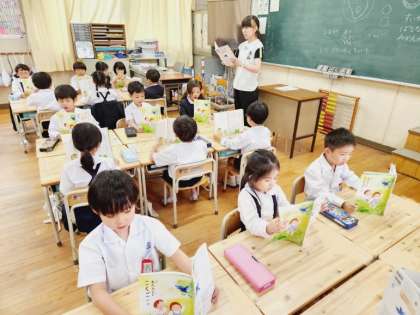 1年生は国語の時間に「ひらがな」の練習とともに、国語の教科書の「音読」の練習に取り組んでいます。