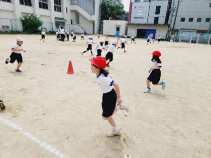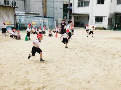 今日は「おにごっこ」や「かけっこ」など、主に“走る”運動をしました。