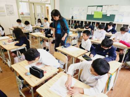5年生の教室では「わたしはヴァネッサと歩く」というお話を使って子どもたちが学習をしていました。