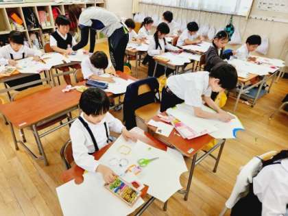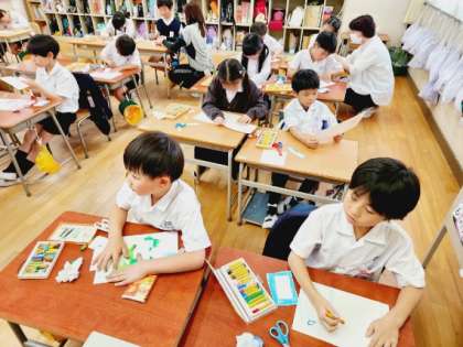 2年生は図画工作の時間に「おしゃれなようふく」の制作に取り組みました。