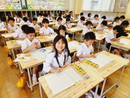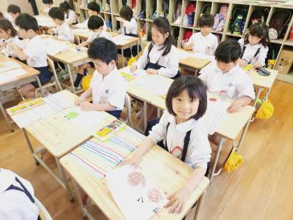 1年生は図画工作の時間に「パス」の正しい使い方の練習をしました。
