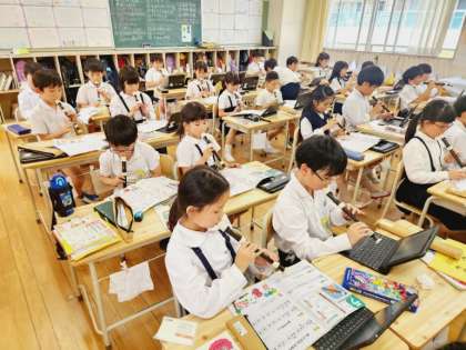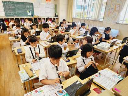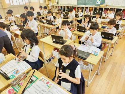 今日はタブレットパソコンを活用した、リコーダーの練習に取り組んでいましたよ!