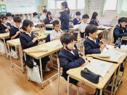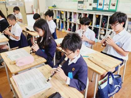 6年生が音楽の時間にリコーダーの練習をしていました。
