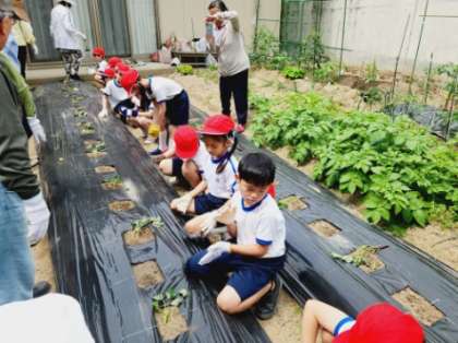 子どもたちは、少しどきどきしながらも、無事にさつまいもの苗を植えることができました。
