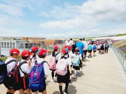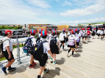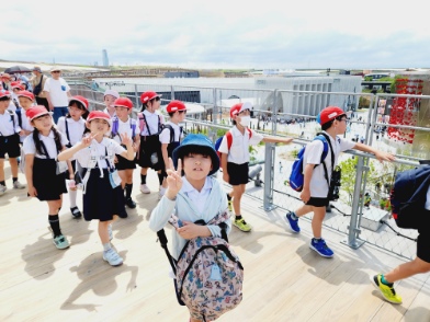 大屋根リングの上から、会場の様子を眺めながら歩きます。