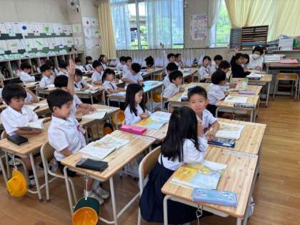 1年生が、「とんこととん」というお話の挿絵を見ながら、気がついたことをたくさん発表していました。