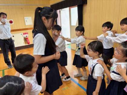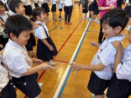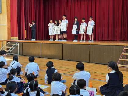 今日の集会は、「じゃんけん列車」でした。6年生が1年生を気遣う優しい姿がたくさん見られました。