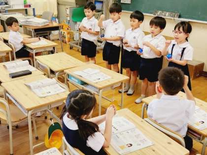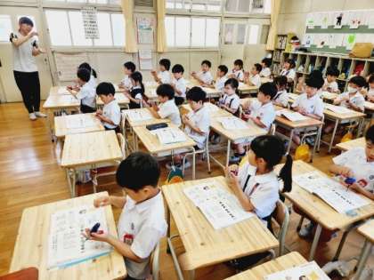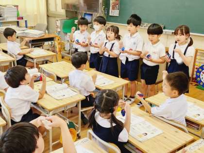 1年生は音楽の時間に、歌に合わせてリズムをうつという学習をしました。