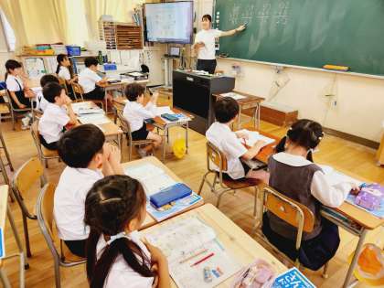 2年生は算数の時間に「たし算とひき算のひっさん」の学習をしています。