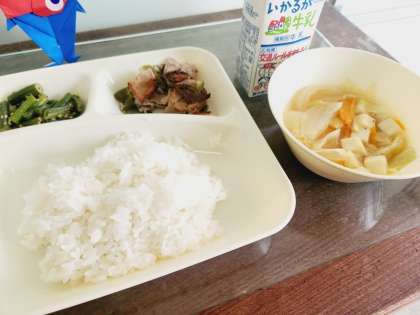今日は豚肉に梅肉を加えて蒸し焼きにしたものが主菜として提供されています。