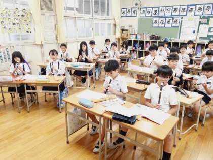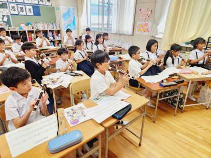 4年生が音楽の時間に歌とリコーダーの練習をしていました。