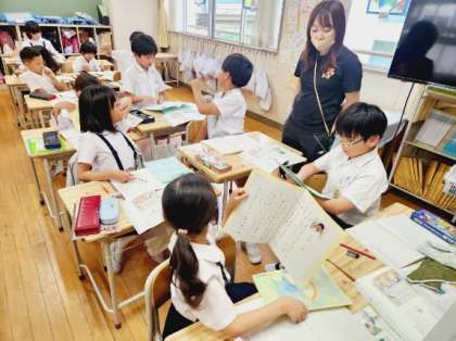 国語の時間に「わたしの説明文」を書きまとめてきた3年生。