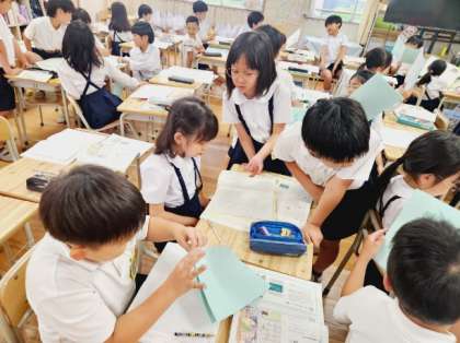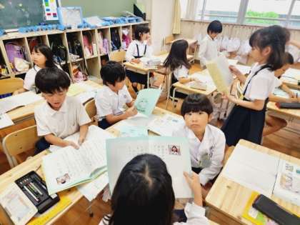 今日はいよいよ「わたしの説明文」の交流の日となり、みんなが興味深そうにクラスのお友達の「説明書」を読んでいます。