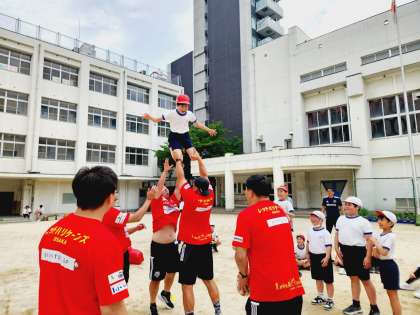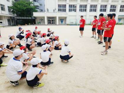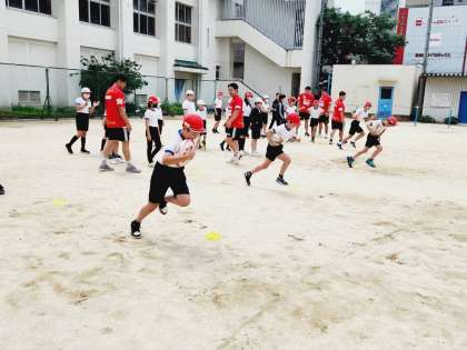 体をほぐす運動からラグビーボールを使ったゲームまで、さまざまなことを選手の皆様と一緒にさせていただき、子どもたちは楽しく活動し、交流を深めていました!
