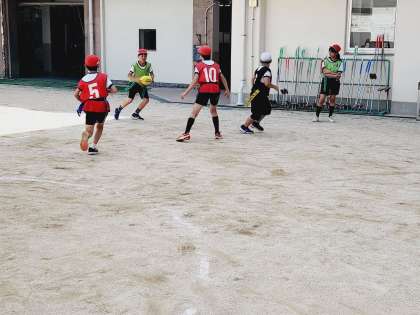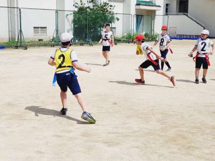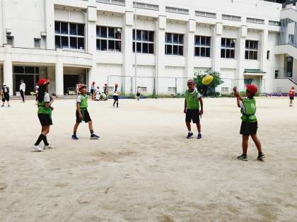 昨日ゲストティーチャーとして、プロのラグビーチーム「レッドハリケーンズ大阪」の皆さんにお越しいただき、ラグビーのことを教えてもらったところですので、パス回しやボールを持っての走り方がとてもかっこよく見えました!