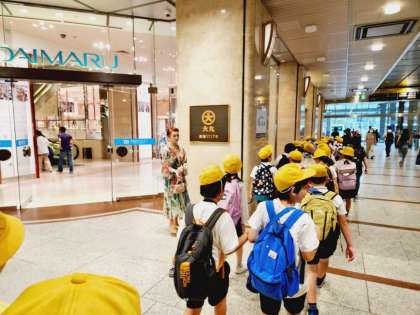 暑さ対策のため一部行程を変更し、できる限り建物の中を歩くようにして現地に向かいました。