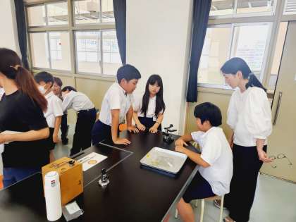 理科の時間に「メダカ」の学習をしている5年生。