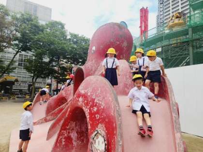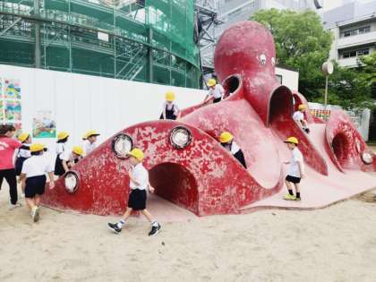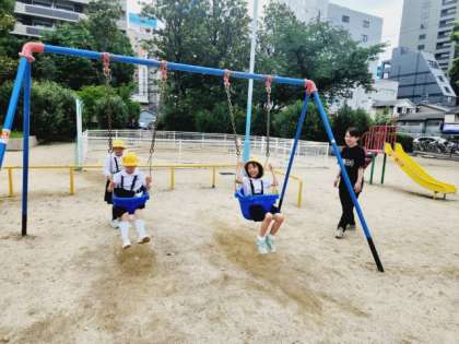 「こうえん」にどんなものがあったかをみんなでがんばって確認をしたので、公園の遊具を使って遊ぶ時間をとることができました!