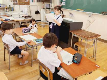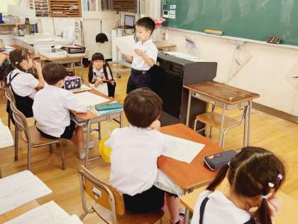 国語の時間に「こんなことをしているよ」の学習をしている2年生。