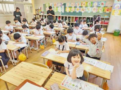 国語の時間、1年生は「ひらがな」の学習が終わり、「カタカナ」の学習が始まっています。
