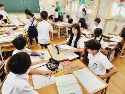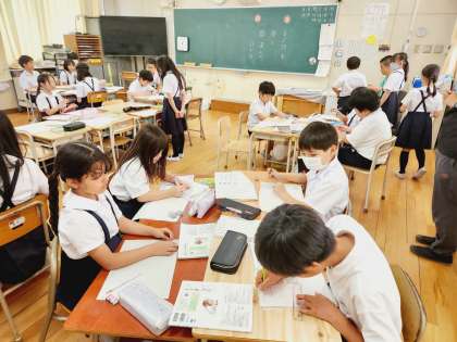 4年生は国語の時間に「山場のある物語を書こう」の学習をしています。