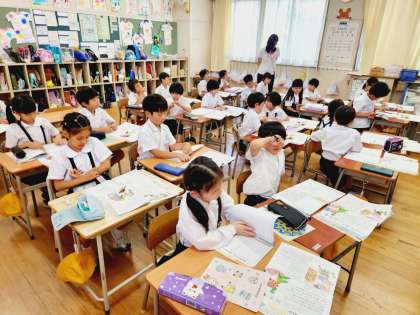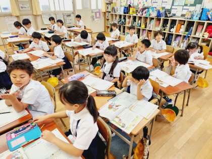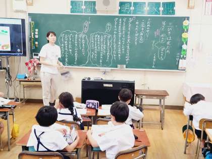 2年生は道徳の時間に「三びきは友だち」というお話を学習していました。