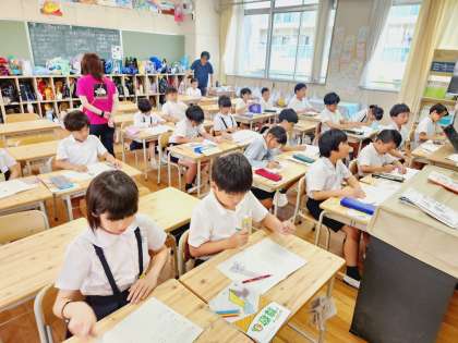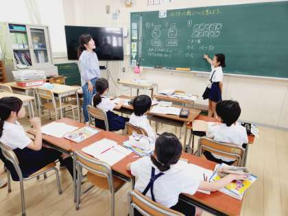 3年生は算数の時間に「10でわる」文章問題を解いていました。