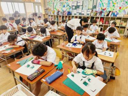 2年生は図画工作の時間に「カッターナイフ」を使った制作活動を行います。