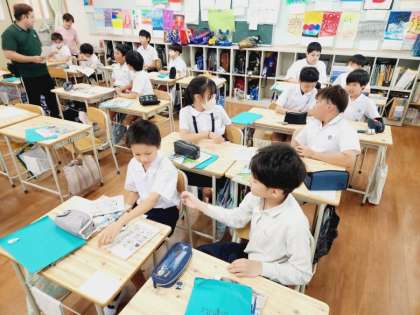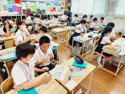 5年生の授業では、ビンゴゲームのようなプリントを使って楽しく英語の表現を学べる授業をしてくださり、子どもたちもとても意欲的に活動に取り組んでいました!