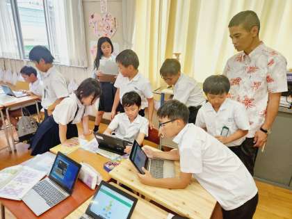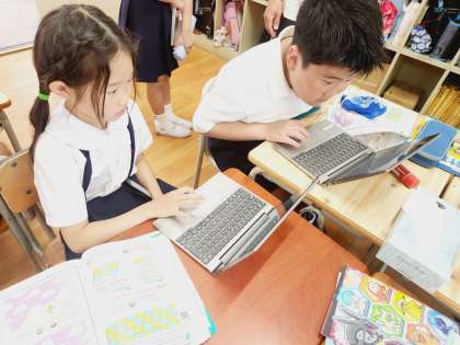 算数の時間に「さまざまな四角形」について学習している4年生。