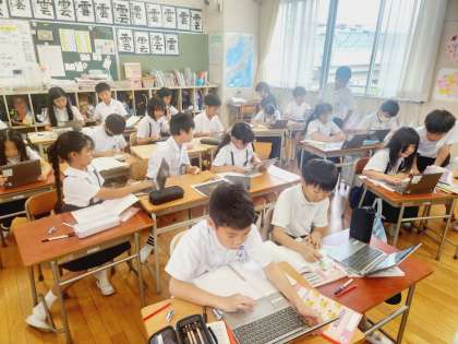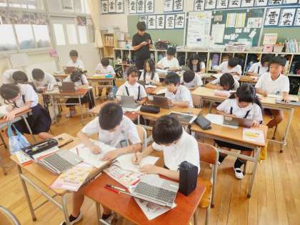 4年生が授業の合間の時間を使って「自主学習ノート」をつくっていました。