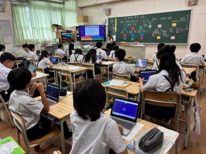 単元のテストに向けて、5年生がカフートでクイズに挑戦していました。
