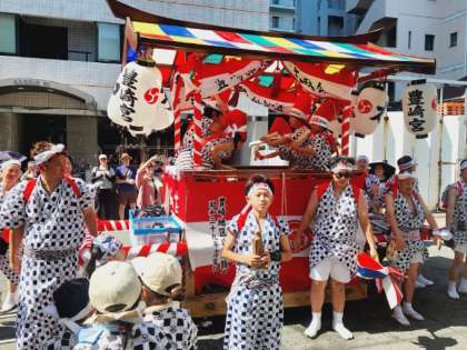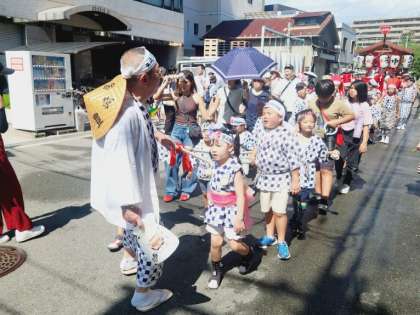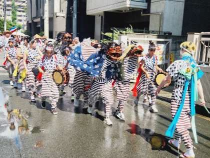 地域の皆様のほか、豊崎小学校からも多くの先生方がお手伝いに来てくださり、道路に水をまいたり、冷たい飲み物を配ったりするなど、たくさんのお手伝いをしていただきました。