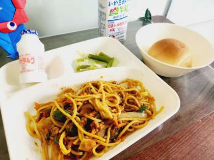 今日は子どもたちの大好きなスパゲッティが、カレー味で登場です!