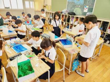3年生が図画工作の時間に取り組んでいる「はこの中の世界」の制作は、いよいよ仕上げの段階です。