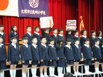 みんなで歌うのは「野に咲く花のように」。心がこもったプレゼントです。その後「校歌」。初めて聞く校歌はどんな感じだったかな。
