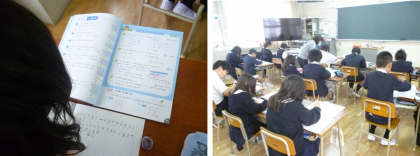 教科書の演習問題を各自で解いていく。その後,黒板のところに出てきてみんなの前で解答を書かないといけない。