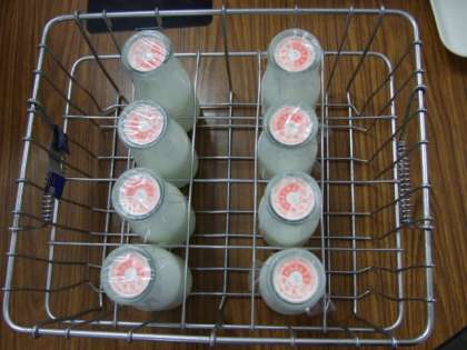 「かごに、牛乳瓶が整列して並んでいるだけ。」