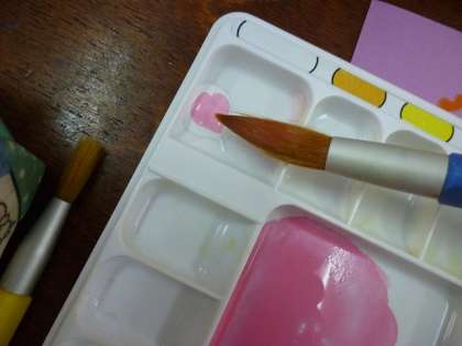 「先生!パレットで色をつくっていたら,偶然ハートの模様ができました!」