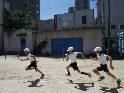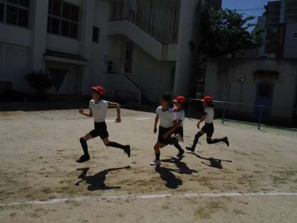 青空のもと元気いっぱい駆け抜けました。久しぶりの良い天気運動場で力いっぱい走りました。運動会まで力の限りかけていきたいと思います。