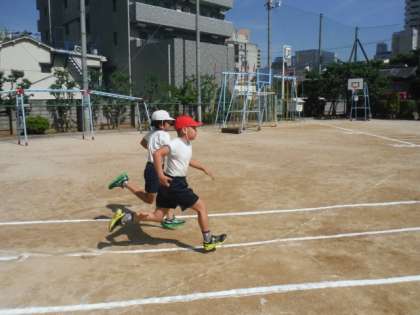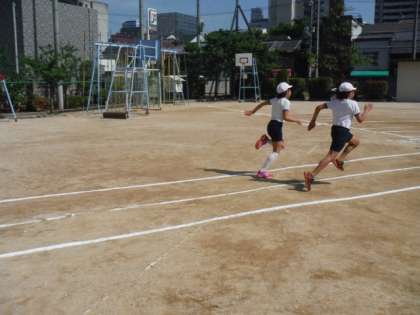 お隣の豊崎本庄小学校の校庭を借り50m走とソフトボール投げをしてきました。